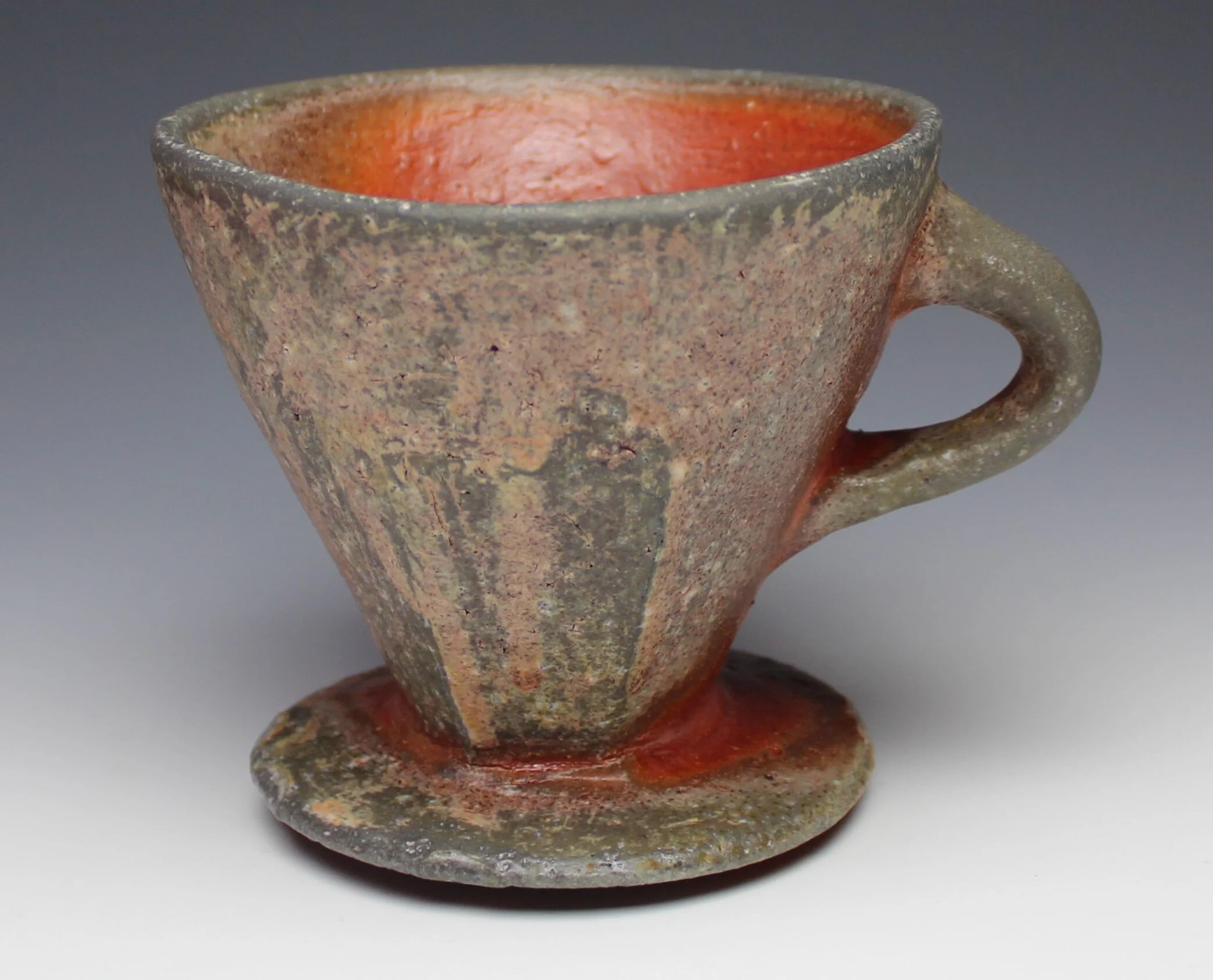 Pedestal Mug, Porcelaneous Stoneware with Applied Slip, Soda-Fired
