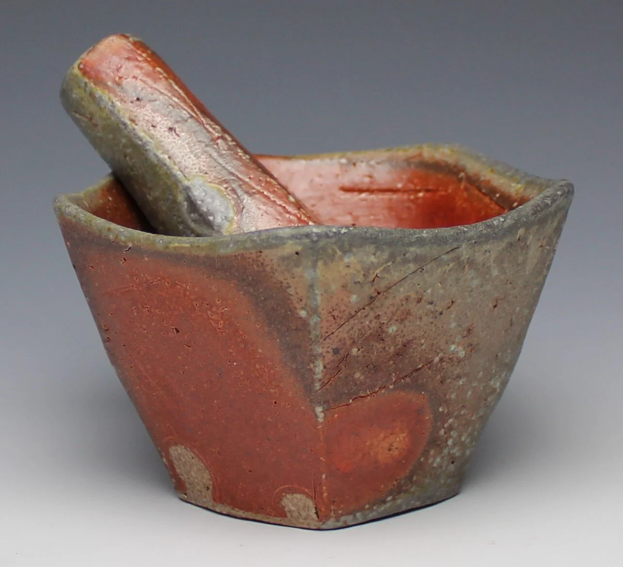 Mortar & Pestle, Porcelaneous Stoneware with Applied Slip, Soda-Fired